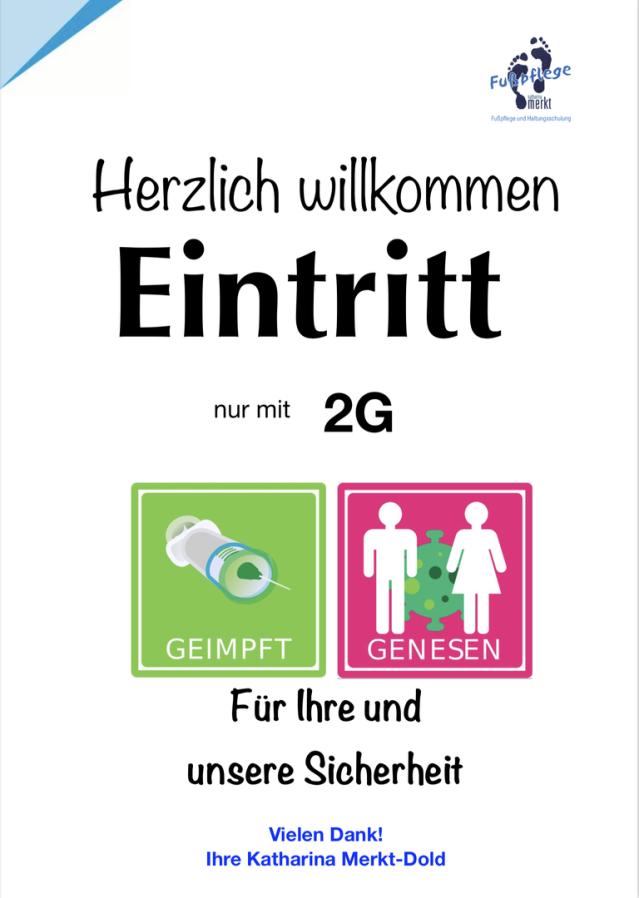 bitte beachten Sie das nach dem Aktuellen Infektionsschutzgesetz, ein Fusspflege Termin nur mit 2G möglich